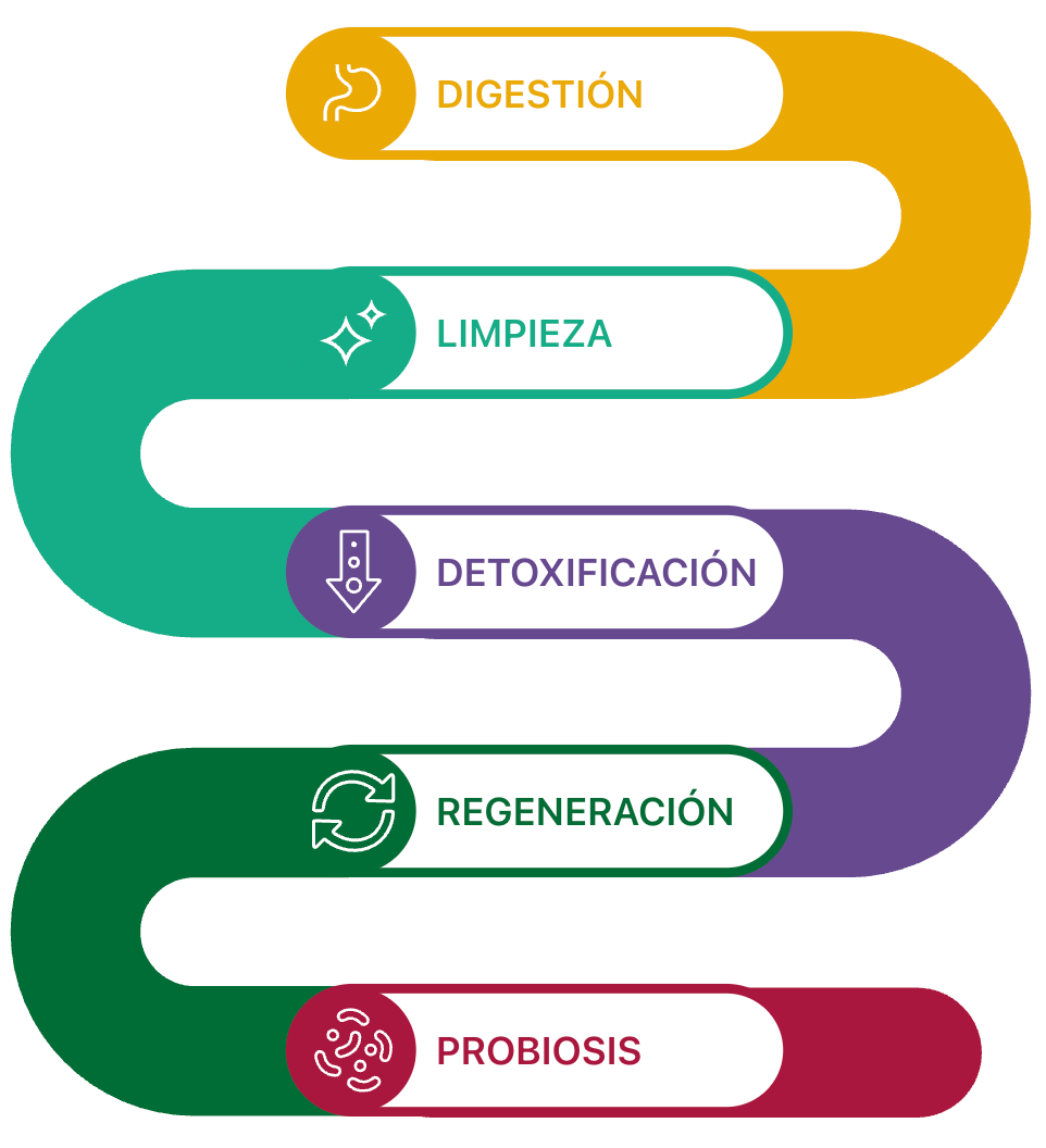 Limpieza y drenaje de toxinas del tracto GI.