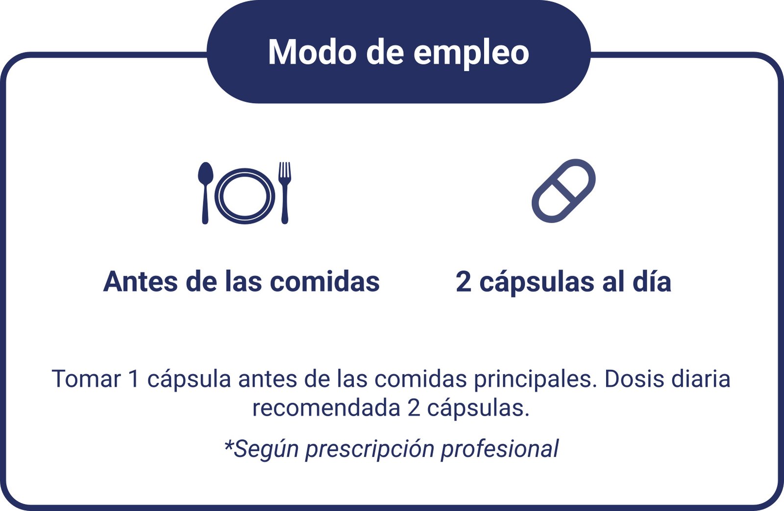 Modo de uso: tomar 2 cápsulas al día antes de una comida.