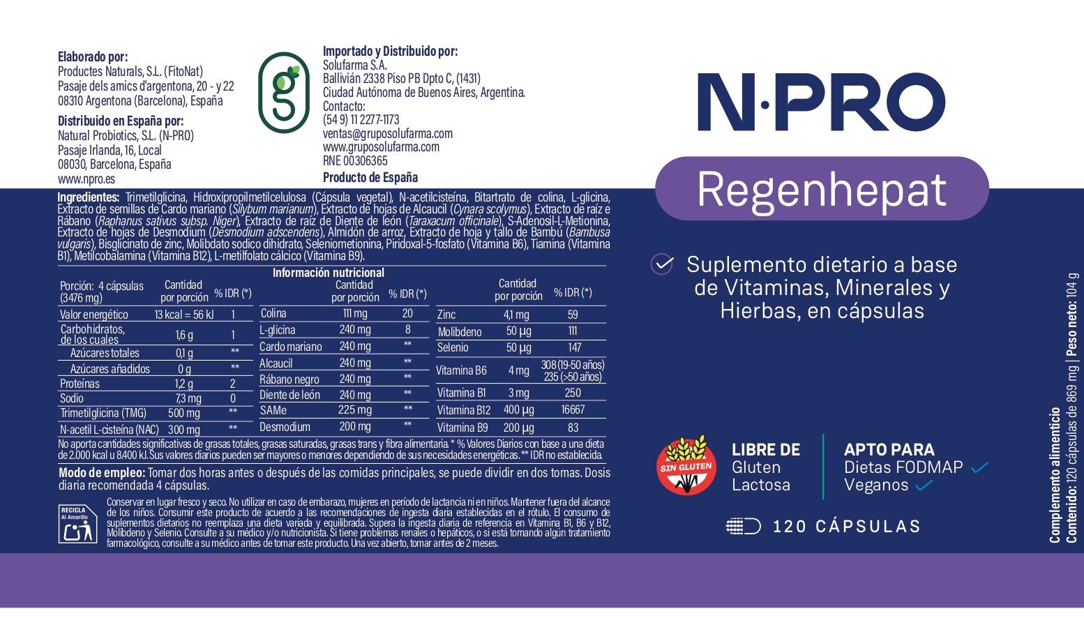 NPro Regenhepat es un suplemento alimenticio compuesto por extractos secos de plantas, aminoácidos, vitaminas y minerales que contribuyen a la salud hepática y biliar.
